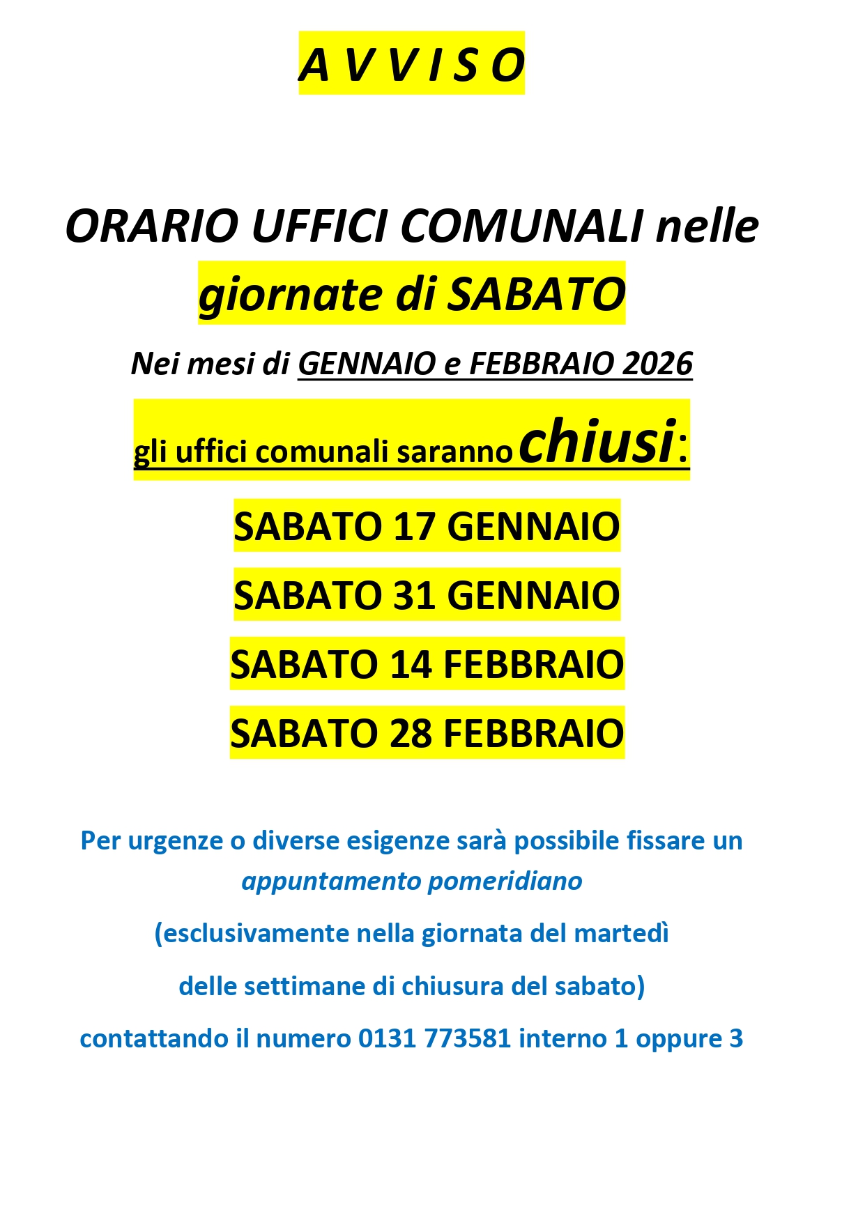 gli uffici comunali saranno chiusi: